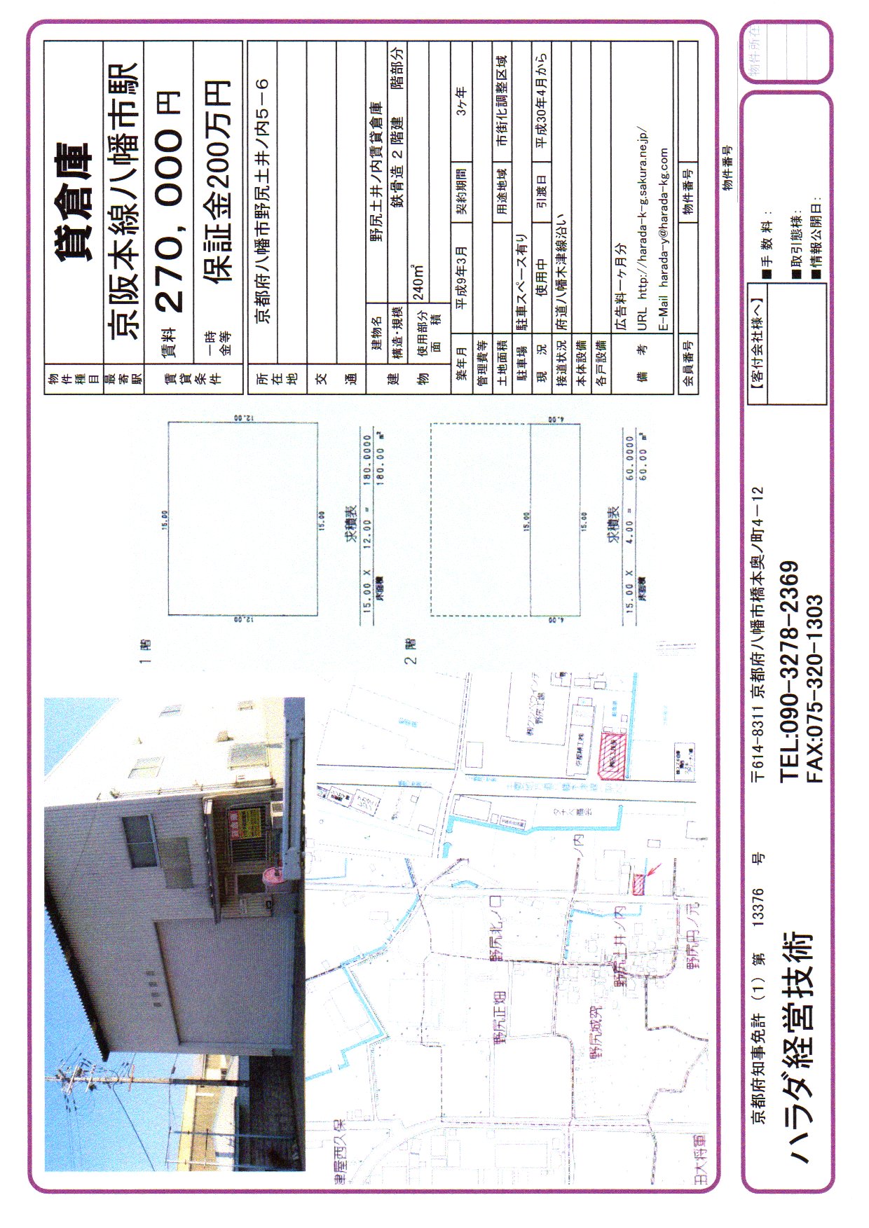 八幡市野尻土井ノ内5番地6賃貸倉庫・事務所